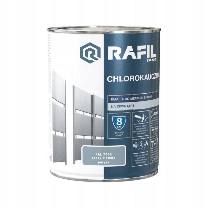 Emalia do metalu i betonu CHLOROKAUCZUK 0.9 l Szary ciemny RAL 7046 RAFIL