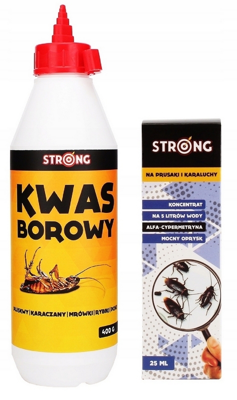 ZESTAW NA KARALUCHY I PRUSAKI: KWAS BOROWY 400G + STRONG ALFASECT KONCENTRAT 25ML