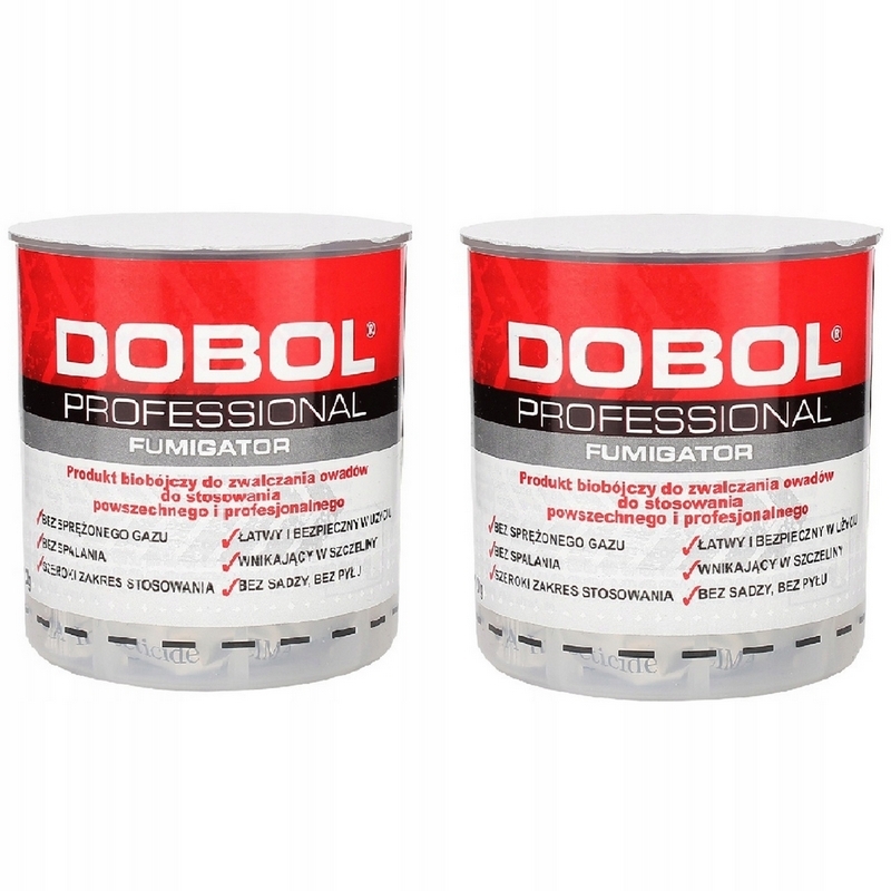 Produkt biobójczy w postaci świecy dymnej do zwalczania owadów przeznaczony do stosowania powszechnego i profesjonalnego. DOBOL Fumigator to produkt innowacyjny i łatwym w użyciu. Umożliwia całkowitą dezynsekcję pomieszczeń dzięki rozpyleniu "mgły" owadobójczej, szybko rozprzestrzeniającej się nawet w pomieszczeniach, gdzie utrudniony jest oprysk. Świeca nie zawiera przy tym sprężonego gazu, działa bez efektu spalania, posiada szeroki zakres stosowania oraz łatwy i bezpieczny sposób użycia.