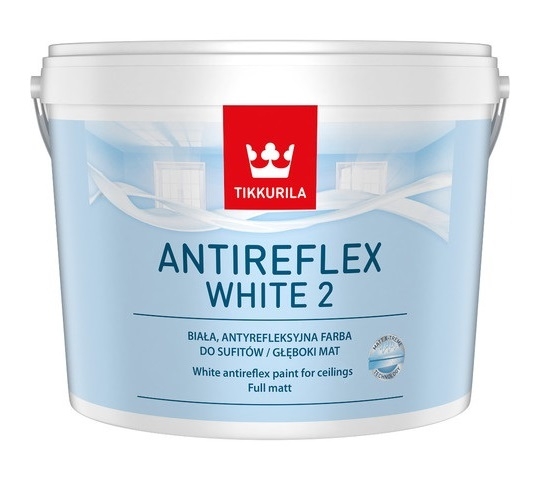 Przykłady zastosowania: Farba Tikkurila Anti-Reflex White [2] przeznaczona jest do malowania sufitów wewnątrz budynku. Można ją stosować do malowania niemalowanych powierzchni i powierzchni uprzednio pokrytych farbami dyspersyjnymi. Nadaje się do malowania powierzchni szpachlowanych, tynku, płyt pilśniowych, wiórowych i okładzin tynkowych oraz tapet z włókna szklanego i materiałów podobnego typu. Produkt nadaje się również dekoracyjnego malowania betonu. Idealnie sprawdzi się m.in. w: pokojach dziennych, dziecięcych, sypialniach, salonach, jadalniach, holach, korytarzach, a także pomieszczeniach biurowych i użyteczności publicznej. Szczególnie polecana jest do malowania sufitów o dużej powierzchni i dużym doświetleniu, tworzy całkowicie matową i pozbawioną refleksów świetlnych drobnoziarnistą powierzchnię.