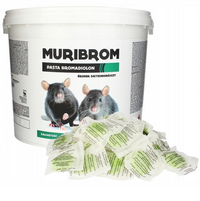 MURIBROM PRO pasta dzięki smakowitym składnikom mieszanki jest wykrywana przez gryzonie z dużej odległości. Zawiera bromadiolon - w 100% śmiertelny już po jednorazowym spożyciu. Gryzonie giną bezstresowo, z powodu wewnętrznego krwotoku, długo po spożyciu i daleko od miejsca wyłożenia. Tym sposobem inne gryzonie nie stają się podejrzliwe i nadal spożywają przynętę aż do całkowitej eksterminacji. 100% śmiertelność po pojedynczym spożyciu. Dodatkowo zawiera także gorzką substancje, która zapobiega przypadkowemu połknięciu.