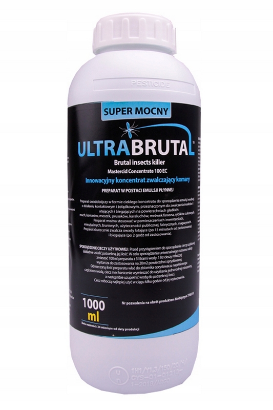 Ultra Brutal Mastercid to super skuteczny preparat na komary, meszki, osy, kleszcze, karaluchy, prusaki, mrówki faraona i inne insekty o wydłużonym czasie działania.