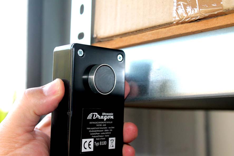Nareszcie nie trzeba wykonywać żadnych żmudnych prac by zamocować odstraszacz. Teraz można robić to w dowolnym miejscu, można zmieniać położenie odstraszacza wiele razy i to niezwykle szybko i łatwo. Urządzenie jest wyposażone w mocny magnes, za pomocą, którego łatwo umieścisz je w dowolnym miejscu. Wystarczy poszukać kawałek metalowej powierzchni - rura, element konstrukcji, metalowe drzwi, szafka, regał, grzejnik itp. Dodatkowo urządzenie posiada specjalną metalową zawieszkę, którą można przykręcić do dowolnej powierzchni , a następnie mocować na tej zawieszce sam odstraszacz. To świetne rozwiązanie gdy nie ma w pobliżu metalowych elementów.