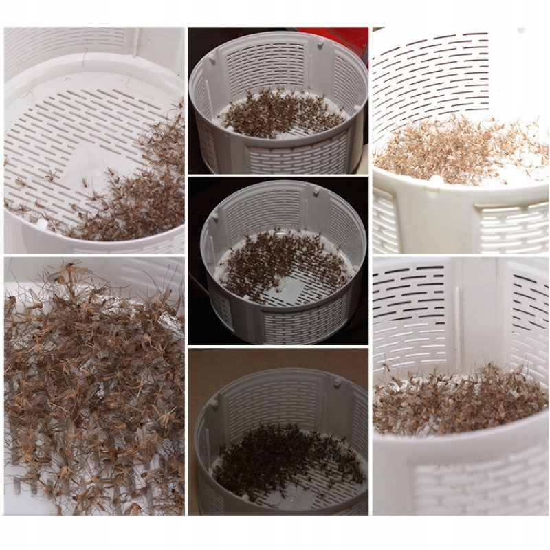 - Następnie owady trafiają do pojemnika umiejscowionego na dole urządzenia, umierając po niedługim czasie z powodu braku pożywienia.