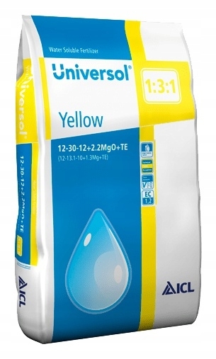 Universol Yellow - żółty, z wysoką zawartością fosforu, najczęściej jest stosowany w początkowej fazie uprawy, bezpośrednio po doniczkowaniu, w celu stymulowania rozwoju korzeni. Stosowany w późniejszym okresie sprzyja wytwarzaniu pąków kwiatowych. Universol zawiera pełny pakiet niezbędnych makro- i mikroelementów