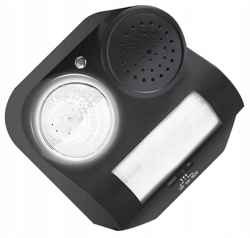 Gdy dowolne zwierzę zbliży się do obszaru, na którym pracuje detektor PIR, automatycznie włączy się odstraszacz i przez krótki czas będą emitowane głośne odgłosy ptaka drapieżnego (myszołowa) oraz dodatkowe błyski świetlne skutecznie odstraszające zwierzęta!