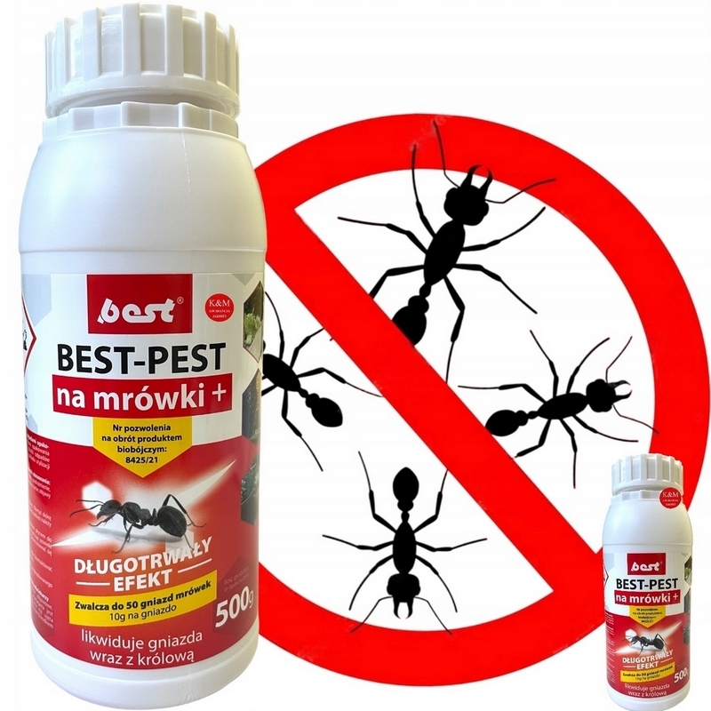 Likwiduje wszystkie gatunki mrówek nachodzące do budynków z zewnątrz oraz bytujące w ich pobliżu (na balkonach, tarasach, podjazdach, chodnikach i ścieżkach).