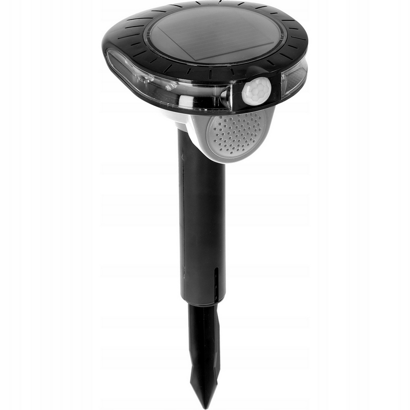 Solarny odstraszacz zwierząt (m.in. myszy, kun, szczurów) dźwiękowo-błyskowy pozwoli Ci skutecznie pozbyć się nieproszonych gości z Twojego ogrodu. Odstraszacz emituje sygnały na odległość 5-8 m, w promieniu o zakresie 110-120 stopni.