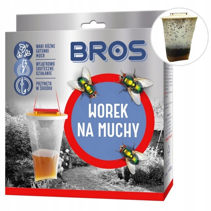Atrakcyjny środek wabiący oraz duży rozmiar worka pozwalają wyłapać dziesiątki tysięcy much w krótkim czasie.