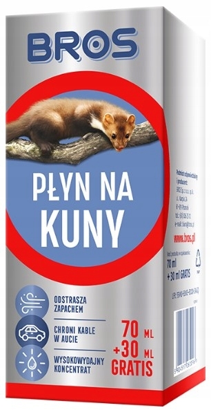 Płyn skutecznie odstraszający kuny. Może być stosowany w pomieszczeniach, pojazdach i na terenach otwartych. Przy