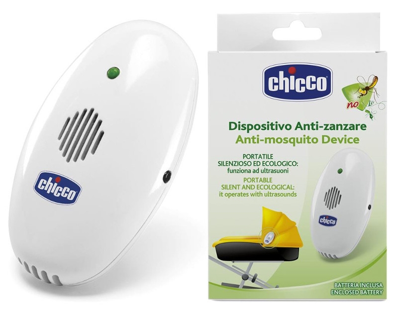 Urządzenie Chicco działa poprzez ultradźwięki, które odstraszają komary nie wpływając przy tym negatywnie na ludzi. Szczególnie zalecane do użytku na świeżym powietrzu. Wymaga małej baterii alkalicznej 1,5V. Średnia długość działania to około 100 godzin.