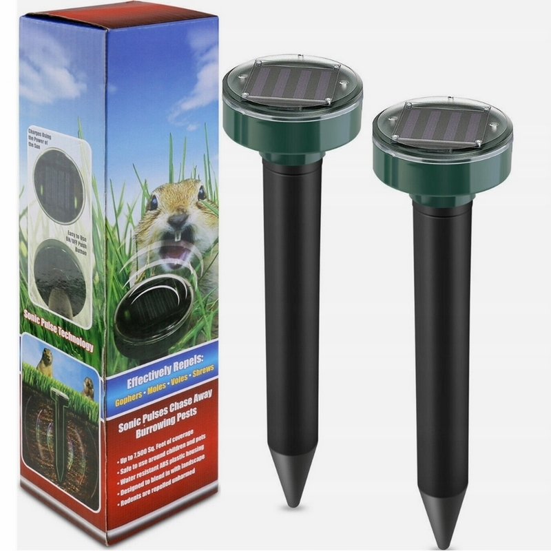 Odstraszacz Ultradźwiękowy Nornice Krety Gryzonie Do Ogrodu Solarny 2 Sztuki