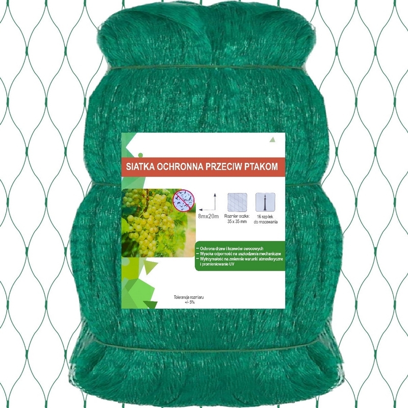 Wielosezonowa bardzo mocna siatka ochronna przeciw ptakom o wymiarach 8 X 20 metrów