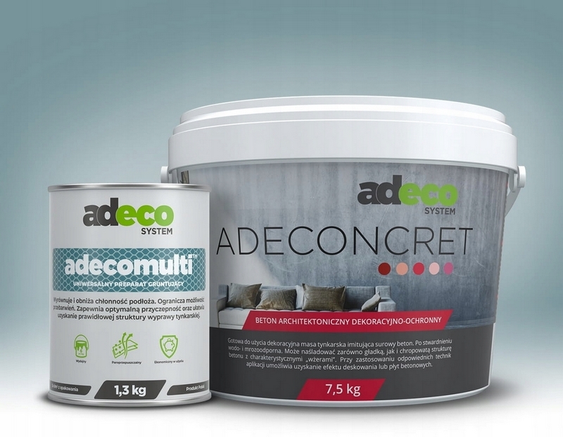 zestaw zawiera beton architektoniczny ADECONCRET - 7,5 kg + grunt szczepny adecomulti 1,3 kg