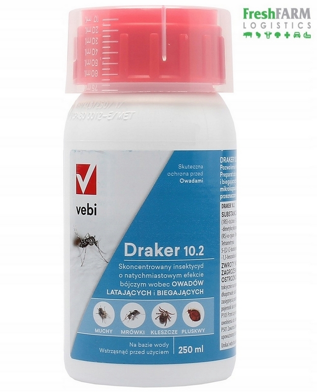 Draker 10.2 to insektycyd w postaci koncentratu do oprysku. Produkt przeznaczony do użytku profesjonalnego. Szczególnie polecany do zwalczania owadów latających i biegających zarówno wewnątrz jak i na zewnątrz obiektów. Zwalcza między innymi: komary, osy, mrówki, karaczany, pchły i kleszcze.