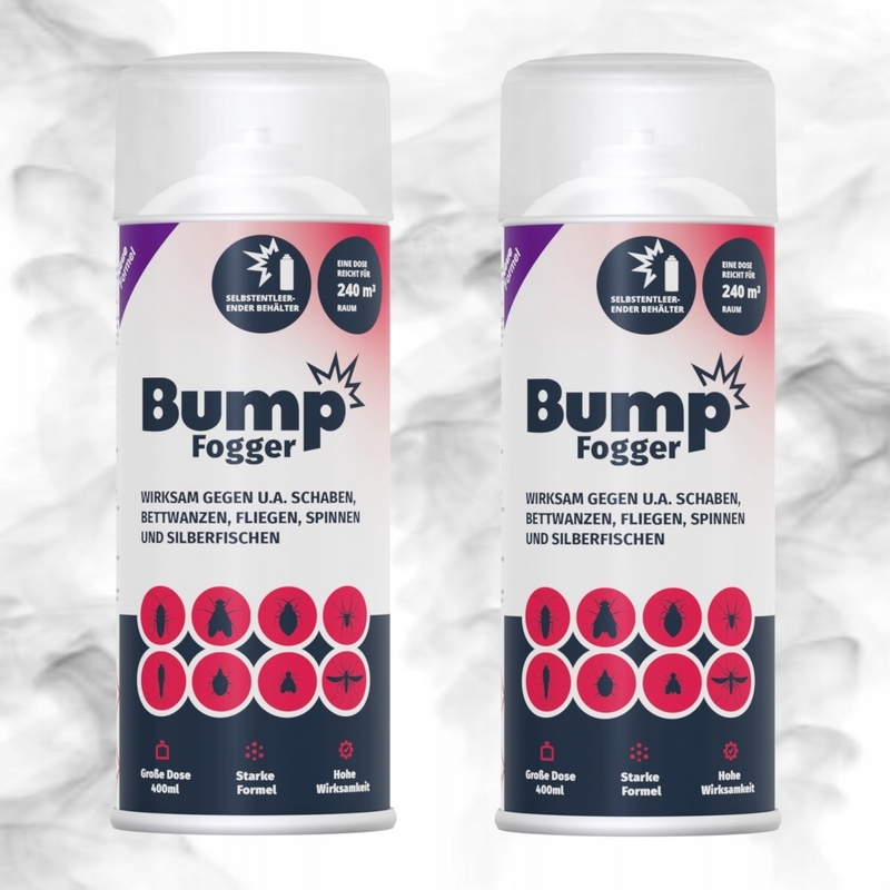 2 x BUMP FOGGER 400ml - bomba do zamgławiania pomieszczeń, preparat skutecznie zwalczający pluskwy, karaluchy, pchły oraz inne uporczywe owady latające i biegające