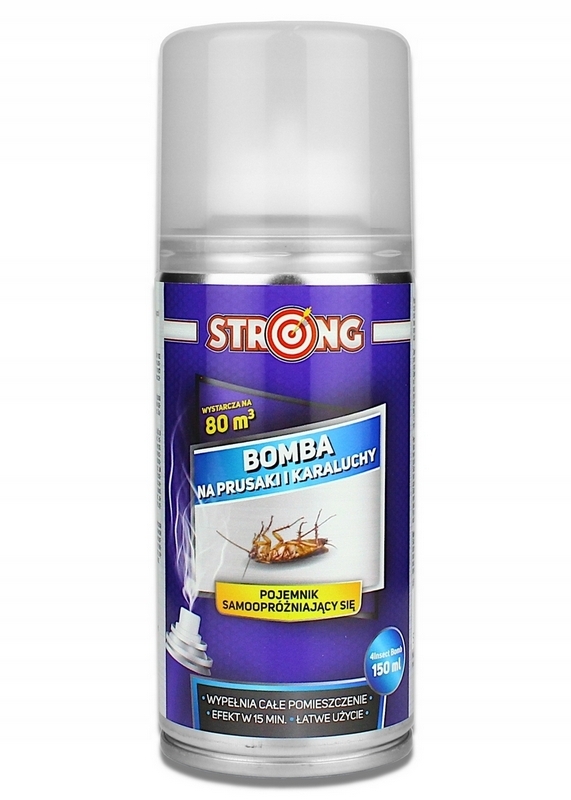STRONG 4INSECT BOMB to produkt owadobójczy przeznaczony do zwalczania owadów biegających takich jak karaczan wschodni, przybyszka amerykańska, prusak i inne. Insektycyd STRONG służy do przeprowadzenia profesjonalnej dezynsekcji w domowych warunkach, do użytku powszechnego. Preparat może być stosowany w pomieszczeniach mieszkalnych i magazynowych, garażach, lokalach użyteczności publicznej, pomieszczeniach gospodarczych, obiektach handlowych, hotelach itp.