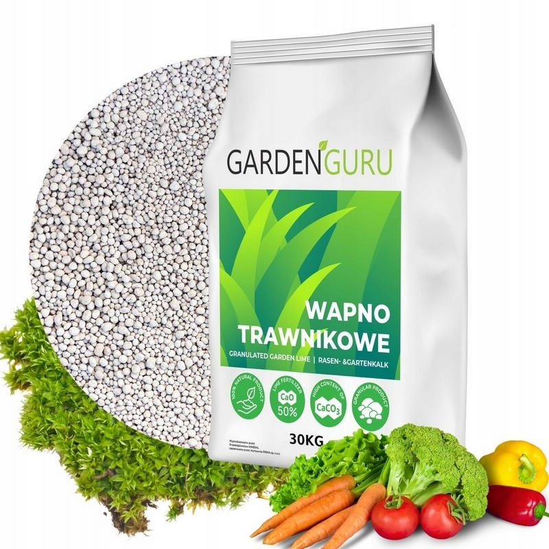 Wapno kredowe granulowane 30KG ogrodnicze do TRAWNIKA 93% CaCO3 Anty mech