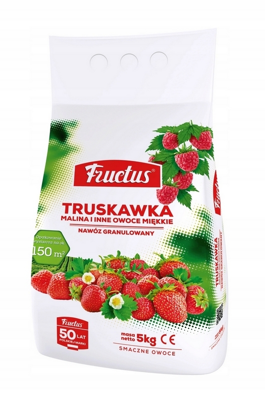 Nawóz do truskawek od marki Fructus posiada odpowiednio dobrane makro- i mikroskładniki pokarmowe gwarantujące uzyskanie obfitych, zdrowych i smacznych zbiorów. Zawartość dolomitu poprawia właściwości fizyczne, chemiczne i biologiczne gleby, przyczyniając się tym samym do zdrowego rozwoju i prawidłowego wzrostu roślin. Produkt wspiera zdolność krzewów owocowych do przezimowania. Nawóz może być stosowany w uprawach owoców takich jak truskawki, maliny, poziomki, porzeczki, agrest, śliwki, wiśnie, czereśnie, brzoskwinie, morele, jabłka, gruszki, leszczyna, winorośl, orzechy włoskie.