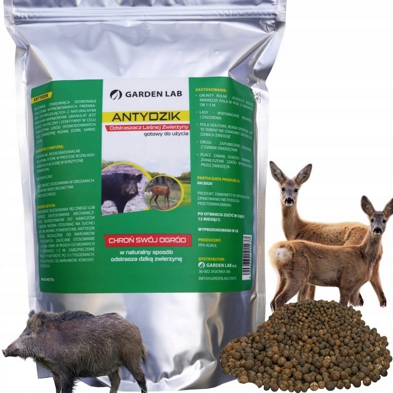 Środek odstraszający w granulacie skutecznie i efektywnie zmniejsza szkody powodowane przez dziki, sarny, jelenie.
