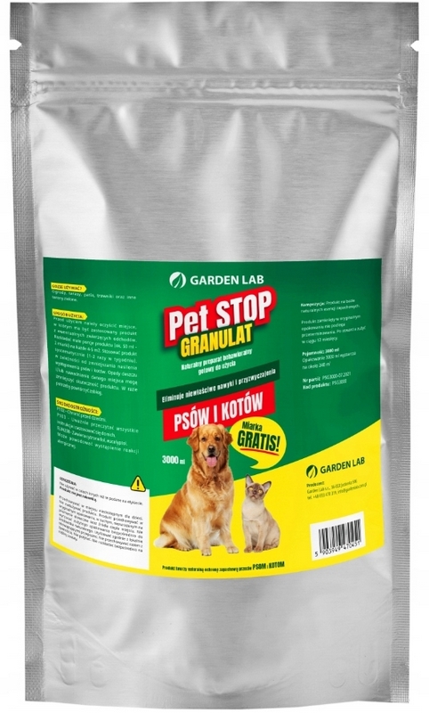 Gotowy produkt do użycia w formie granulatu eliminuje niewłaściwe nawyki i przyzwyczajenia psów i kotów. Naturalny środek, dla wszystkich powierzchni. Całkowicie bezpieczny.