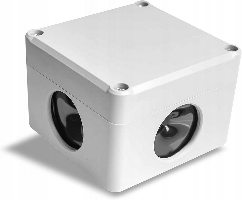 - Do produkcji tego odstraszacza wykorzystano profesjonalną przemysłową obudowę dla elektroniki, wytrzymałą na uszkodzenia mechaniczne, promienie słoneczne, deszcz, mróz i wiatr. Obudowa wykonana z grubego polipropylenu, skręcona mocnymi śrubami a wszystkie miejsca połączeń zabezpieczone są silikonowymi uszczelkami tak by nie dostały się do środka żadne zanieczyszczenia czy woda. U podstawy, posiada specjalne odwodnienie, w razie gdyby wewnątrz skropliła się woda np. przy zmianie temperatur otoczenia.
