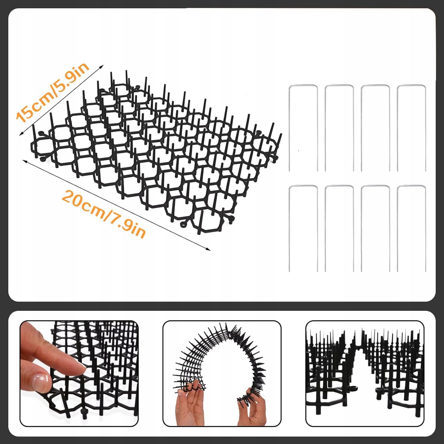 🌟 【Łatwy w użyciu】: Tę siatkę można łatwo rozłożyć i zainstalować w dowolnym miejscu. Siatkę z kolcami można łatwo przykryć i zainstalować w dowolnym miejscu. 8 kotew gruntowych w kształcie litery U mocuje matę zabezpieczającą przed kotami do podłoża. Jeśli to konieczne, możesz użyć nożyczek, aby przyciąć pasek do wymaganego rozmiaru do użycia, co jest bardzo wygodne.
