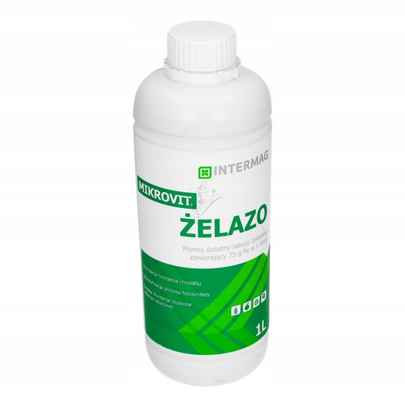 - Płynny dolistny nawóz żelazowy zawierający 75 g Fe w 1 litrze