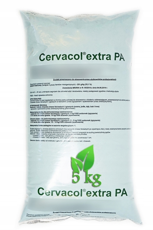 Cervacol Extra PA jest w formie pasty gotowej do stosowania o działaniu odstraszającym, przeznaczonym do ochrony sadzonek i drzewek drzew liściastych i iglastych w leśnictwie przed zgryzaniem i spałowaniem przez zwierzynę łowną.