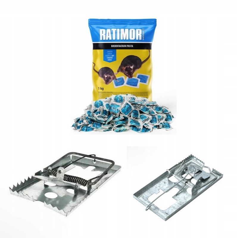 Rewelacyjna trutka RATIMOR w postaci pasty przeznaczona do zwalczania myszy, szczurów, kun i innych gryzoni. Trująca jednodawkowa przynęta pokarmowa w formie pasty o właściwościach mumifikujących, przeznaczona do zwalczania szkodników sanitarnych (szczurów i myszy) w pomieszczeniach (lokalach użyteczności publicznej, hotelach, mieszkaniach, zakładach produkcyjnych, magazynach, obiektach handlowych i inwentarskich, oborach, chlewniach, mleczarniach itp.) oraz na zewnątrz – w bezpośrednim ich sąsiedztwie po umieszczeniu jej w stacji deratyzacyjnej. Trutka nie prowadzi bowiem do zgonu przed upływem 48 godzin, nawet po spożyciu dużej dawki. Dzięki temu inne gryzonie nie nabierają podejrzeń i bez obaw spożywają przynętę aż do całkowitego unicestwienia. Trutka odznacza się dużą skutecznością. Producent obiecuje 100% śmiertelność po jednorazowym spożyciu. Zapewnia ją zawarty w substancji brodifacum. RATIMOR w niewielkich dawkach upośledza proces krzepnięcia krwi. Działa na myszy, szczury śniade i wędrowne itp., w tym na gryzonie odporne na kumarynę i warfarynę. Preparat zawiera gorzką substancję, która zapobiega przypadkowemu połknięciu.
