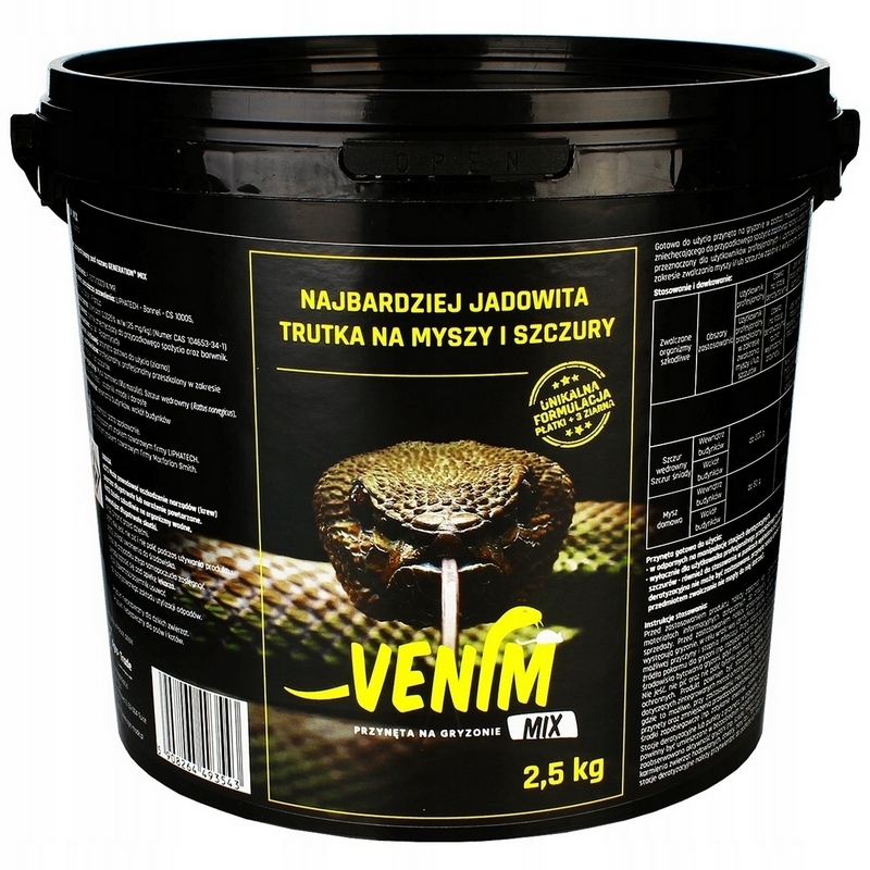Venim Mix należy wykładać w odpornych na manipulację stacjach deratyzacyjnych.