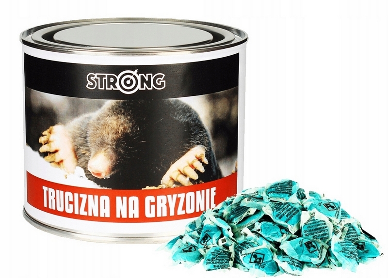 STRONG TRUCIZNA NA GRYZONIE to silny preparat gryzoniobójczy skuteczny przeciw trudnym do zwalczania gryzoniom, pomocny przy problemach z kretami i nornicami. Preparat dzięki smakowitym składnikom mieszkanki jest wykrywany przez szkodniki nawet ze znacznej odległości, a dzięki zawartości sprawdzonej substancji czynnej - BRODIFACOUM - jest w 100% śmiertelny już po jednorazowym spożyciu.