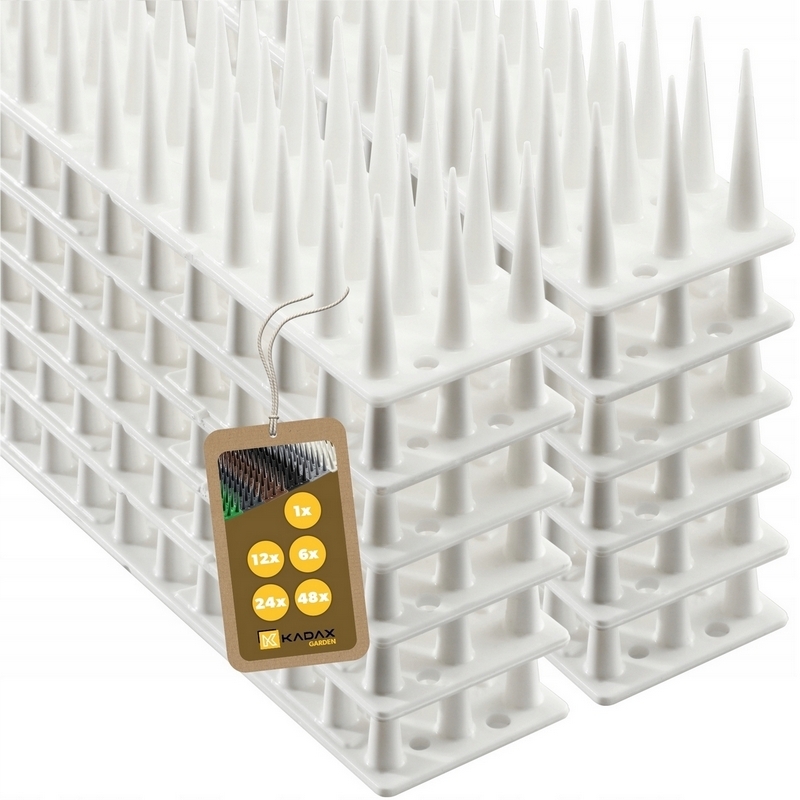Skuteczne w odstraszaniu ptactwa plastikowe kolce marki KADAX, które skutecznie zabezpieczają wszelkiego rodzaju powierzchnie przed gołębiami, mewami oraz innymi dużymi gatunkami ptaków. Plastikowe kolce na gołębie składają się z dwóch równoległych rzędów kolców. Dodatkowo posiada trzeci środkowy rząd, który uniemożliwia lądowanie pomiędzy kolcami. Listwa zapobiega zrzucaniu odchodów przez ptaki i zakładaniu na parapetach czy dachach gniazd lub legowisk.