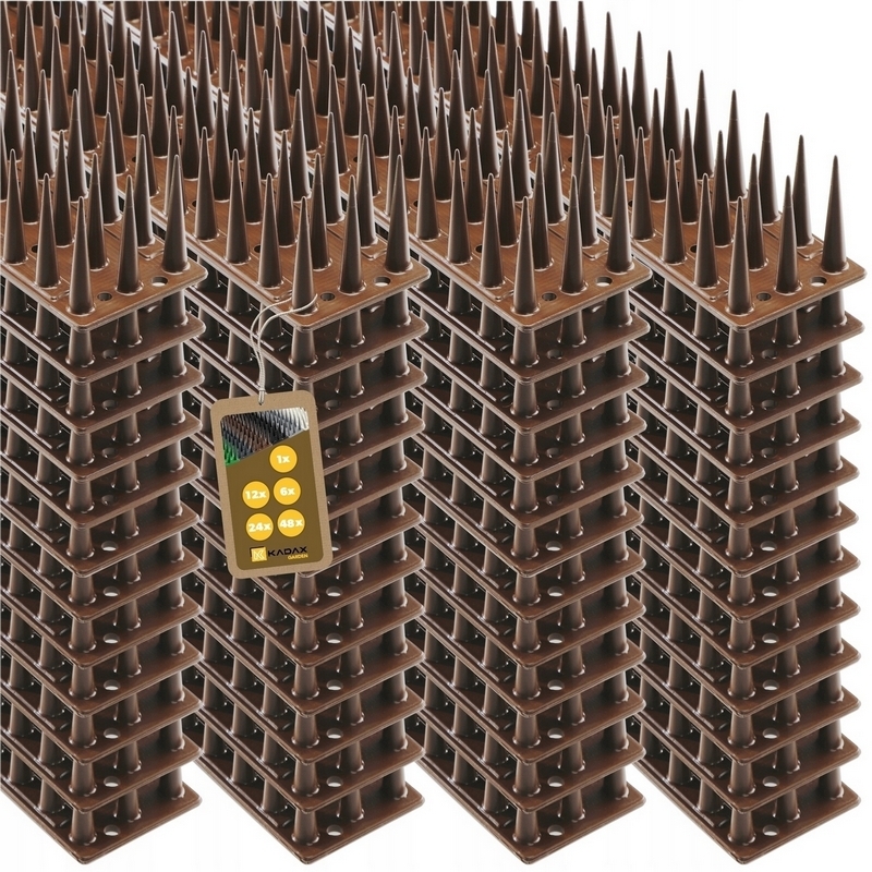 Skuteczne w odstraszaniu ptactwa plastikowe kolce marki KADAX, które skutecznie zabezpieczają wszelkiego rodzaju powierzchnie przed gołębiami, mewami oraz innymi dużymi gatunkami ptaków. Plastikowe kolce na gołębie składają się z dwóch równoległych rzędów kolców. Dodatkowo posiada trzeci środkowy rząd, który uniemożliwia lądowanie pomiędzy kolcami. Listwa zapobiega zrzucaniu odchodów przez ptaki i zakładaniu na parapetach czy dachach gniazd lub legowisk.