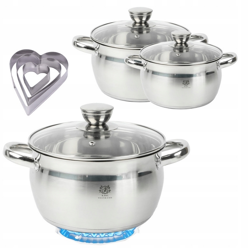 Prezentujemy Państwu zestaw trzech garnków wraz z pokrywkami, renomowanej firmy Karl Hausmann. Od lat jej wyroby cieszą się dużą popularnością na rynku europejskim.