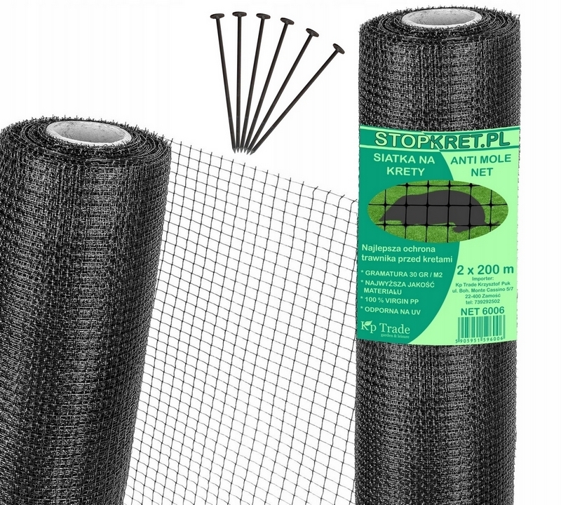 Zastosowanie siatki przeciw kretom daje pewność rozwiązania problemu " kreta w ogrodzie " . Siatka niezwykle skutecznie zabezpiecza trawnik przed kretami na wiele lat dodatkowo wzmacniając i stabilizując glebę na skarpach oraz zabezpiecza korzenie roślin przed mechanicznymi uszkodzeniami .