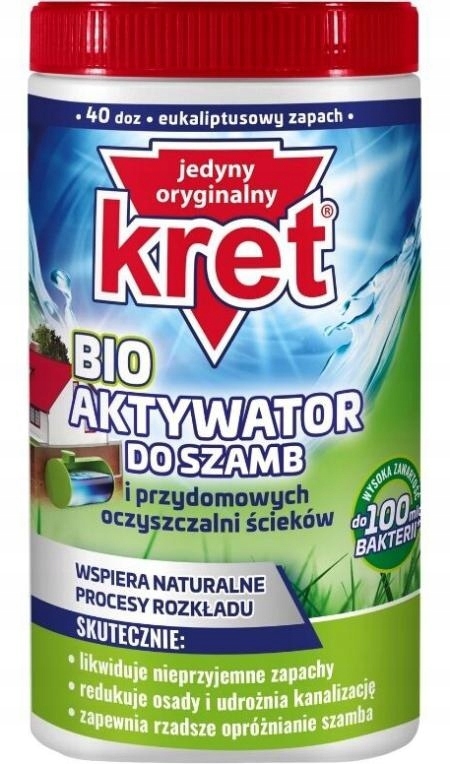 Kret BIO aktywator jest oparty na enzymach i bakteriach - to nowoczesny mikrobiologiczny preparat PRZEZNACZONY DO BIODEGRADACJI ZAWARTOŚCI SZAMB I OSADNIKÓW.