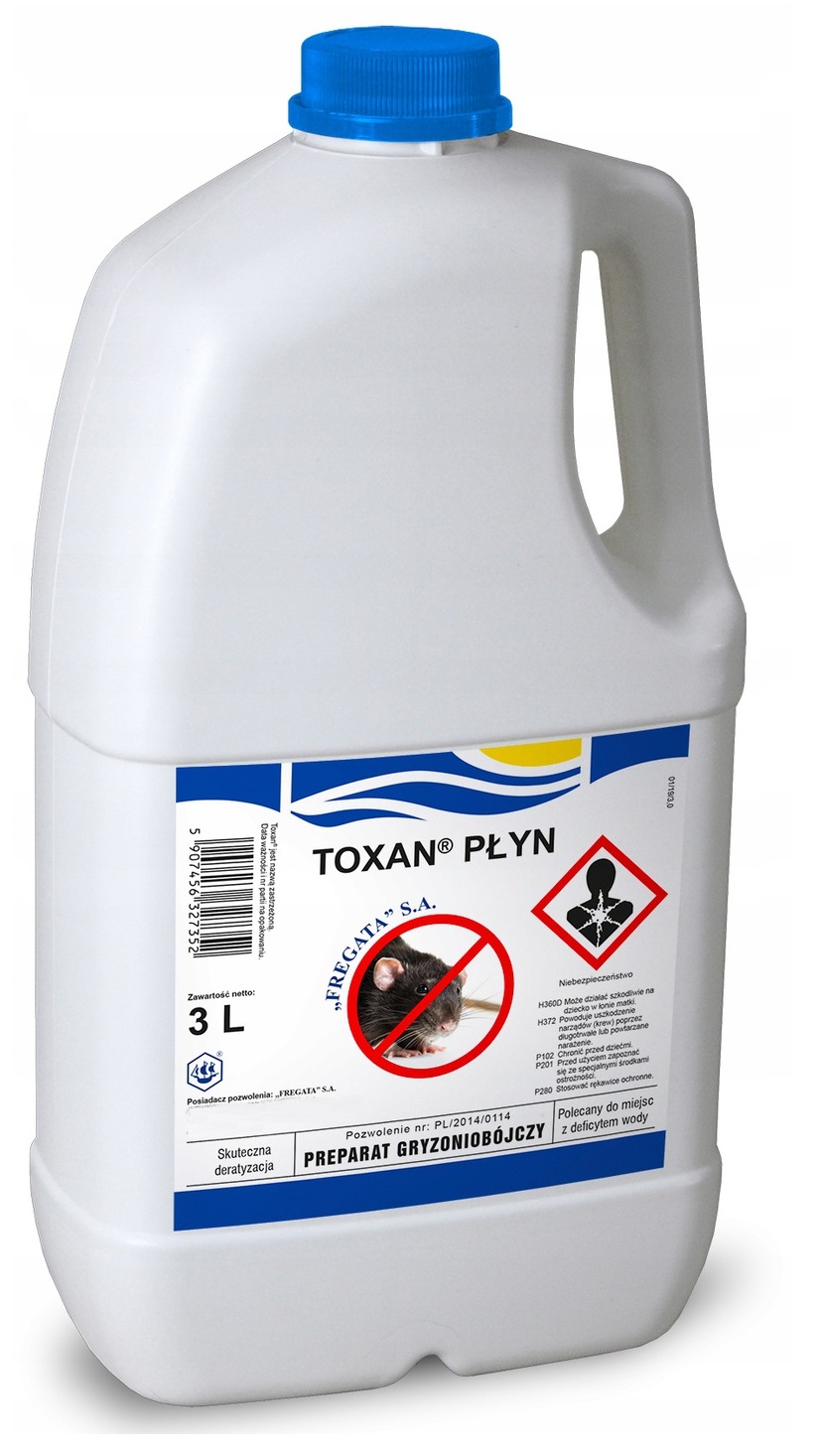 Toxan® Płyn jest bardzo skutecznym preparatem do zwalczania inwazji gryzoni (mysz domowa, mysz polna, szczur wędrowny) na obszarach, gdzie dostęp do wody jest ograniczony oraz w miejscach gdzie ich naturalny pokarm jest zbyt konkurencyjny w stosunku do przynęt stałych w postaci granulatu, płatków, past lub kostek (np. hale produkcyjne, piekarnie, magazyny). W innych miejscach preparat wykładany obok trutek w formie stałej znacznie zwiększa skuteczność deratyzacji.