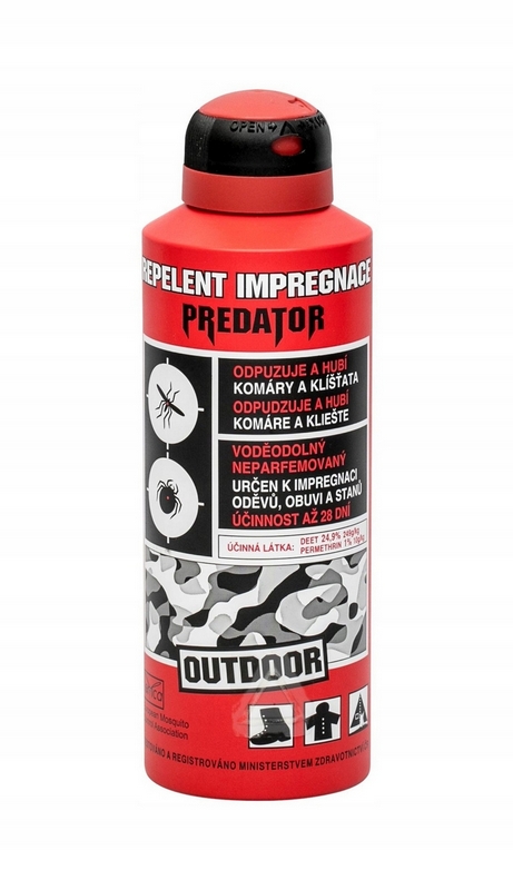 Owadobójczy, wodoodporny środek odstraszający przeznaczony do obszarów o dużym porażeniach owadów niebezpiecznych. Przeznaczony do impregnacji odzieży, obuwia, namiotów, moskitier, ale także do bezpośredniego stosowania na występujące owady. Maksymalnie silny, maksymalnie skuteczny przeciwko kleszczom i wszelkiego rodzaju komarom we wszystkich obszarach geograficznych. Środek odstraszający odzież przeznaczony do ekstremalnych obszarów o zwiększonym niebezpieczeństwie inwazji niebezpiecznych owadów, gdzie istnieje ryzyko przeniesienia zakażenia wirusem Zika, żółtej gorączki, gorączki Dengee, malarii, wirusa West Nile, ciągnika, borelii Lyme, kleszczowego zapalenia mózgu itp. Nie licz na to, że w miejscach z możliwym przenoszeniem niebezpiecznych chorób kupisz wysokiej jakości środek odstraszający. Najczęściej spotykasz się z repelentami z naturalnym ekstraktem, który ledwo chroni Cię przez 15 minut. Chociaż te środki odstraszające są naturalne i przyjazne dla skóry, pamiętaj, że tutaj już ryzykujesz własne zdrowie i życie. Zapewnia ochronę do jednego miesiąca po dokładnej obróbce powierzchni tkaniny. Aplikację należy wykonywać na odzież, obuwie, namioty , śpiwory, moskitiery, zasłony, firany, wózki dziecięce itp. Nie zmniejsza przepuszczalności pary wodnej, dlatego nadaje się również do tkanin typu Gore Tex, Sympatex itp. Jest wodoodporny i nadaje się również do materiałów funkcjonalnych. Obecnie najskuteczniejsza ochrona przed owadami na rynku. Nadaje się do długotrwałego ruchu i przebywania na łonie natury związanego z dużym obciążeniem fizycznym oraz tam, gdzie chcesz być bezpiecznie chroniony przed trudnymi i niebezpiecznymi owadami. Odpowiedni dla myśliwych, wędkarzy, wojska. Produkt nie jest perfumowany w celu uniknięcia identyfikacji w terenie. Odstrasza i zabija kleszcze, komary, tiplice, muchówki, lojnice, owady, muchy i inne owady. Testowany przez Narodowy Instytut Zdrowia Publicznego w Pradze, leśników, podróżników, laboratoryjnie i terenowo na komary Aedes aegypti, komary przenoszące wirusa Zika.