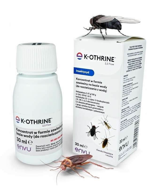 Preparat K-Othrine Flow to innowacyjny koncentrat dedykowany do zwalczania prusaków, karaluchów, much i komarów. Jego głównym składnikiem jest deltametryna, wyjątkowy związek z grupy syntetycznych pyretroidów o działaniu kontaktowym i pokarmowym. Biobójczy efekt występuje natychmiast po zetknięciu szkodnika z opryskaną powierzchnią. Dzięki szybkiej penetracji kutykuli owadów, preparat efektywnie poraża i eliminuje je, dostarczając skuteczne i trwałe rozwiązanie.