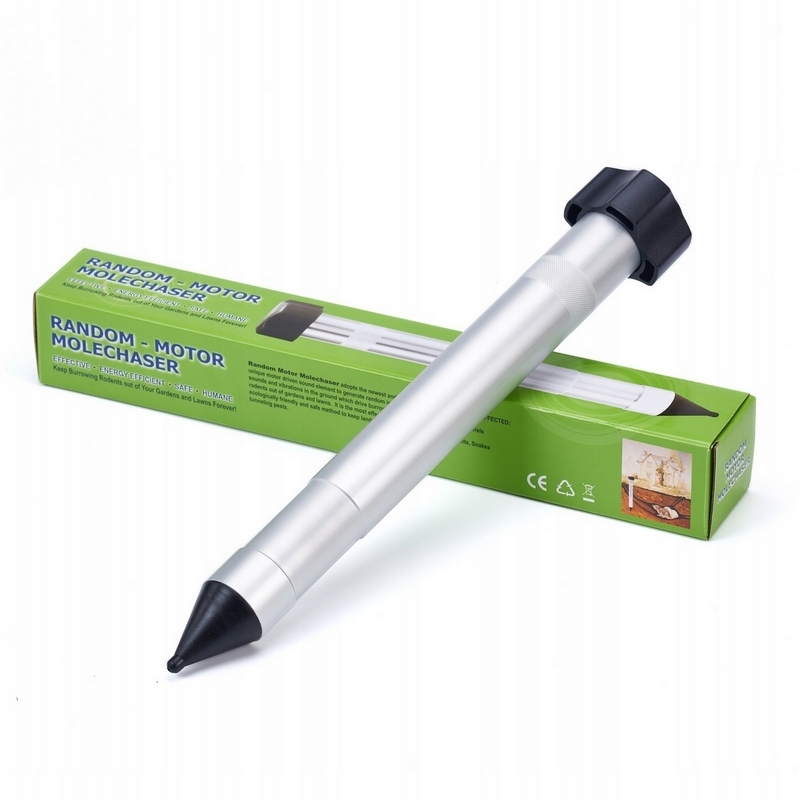 Odstraszacz kretów to solidna konstrukcja, łatwa wymiana baterii, bezobsługowa i 100% odporna obudowa na czynniki atmosferyczne. Wykorzystując zasadę siły odśrodkowej do tworzenia dźwięku i drgań przez silnik, Twój MOTOR MOLECHASER jest najbardziej skutecznym, humanitarnym i przyjaznym dla środowiska sposobem na utrzymanie ogrodu i trawnika wolnych od destrukcyjnych gryzoni gruntowych.