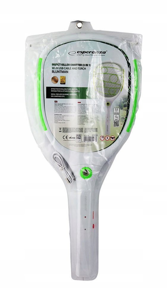 Elektryczna łapka na owady latające Esperanza BLUNTMAN. Bardzo skuteczna w eliminowaniu insektów takich jak: muchy, komary, ćmy oraz inne owady latające.