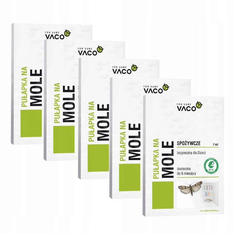 Pułapki marki Vaco zawierają feromony wabiące i zatrzymujące na powierzchni lepowej mole spożywcze oraz przerywające ich cykl rozrodczy. Pułapka skutecznie likwiduje szkodniki we wszystkich miejscach ich występowania takich jak szafki kuchenne, spiżarnie, inne miejsca przechowywania żywności. Pułapka na mole została wykonana z papieru, jest bezwonna i nie zawiera substancji biobójczych, dzięki czemu może być stosowana w pobliżu żywności oraz jest bezpieczna dla dzieci i zwierząt.