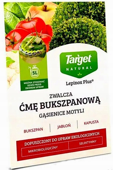 Lepinox Plus Target Natural to preparat, który zwalcza ćmę bukszpanową oraz gąsiennice motyli. Szczególnie polecany do walki z ćmą bukszpanową oraz w ekologicznej ochronie roślin. Na roślinie działa powierzchniowo. Zawiera naturalnie występującą na roślinach oraz w glebie bakterię Bacillus thuringiensis.