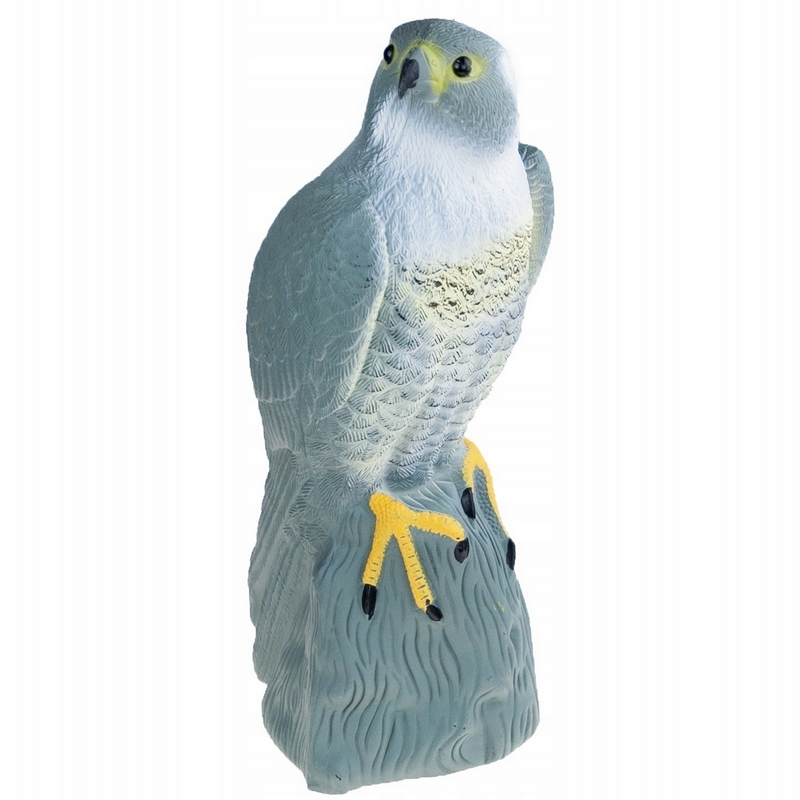 ✅ Sztuczny sokół o realistycznym wyglądzie i rozmiarze, pełniący rolę odstraszacza ptaków (gołębi, szpaków itp.) żerujących na działce lub w ogrodzie.