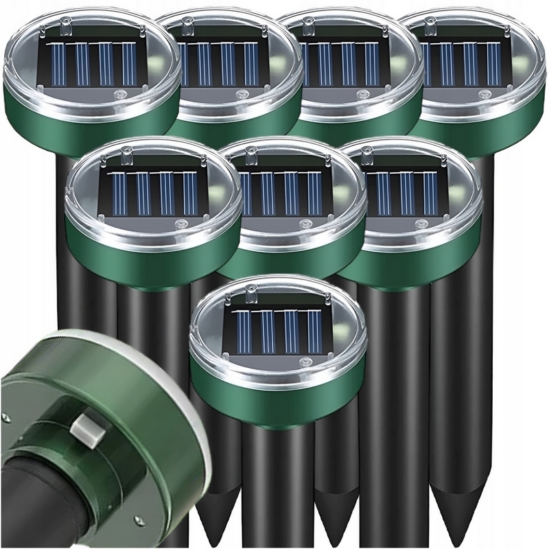 SILNY ODSTRASZACZ NA KRETY GRYZONI ULTRADŹWIĘKOWY SOLARNY WIBRACYJNY 8 SZT