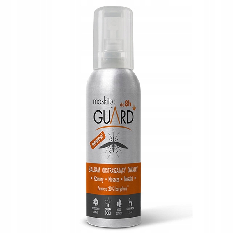 MOSKITO GUARD - jedyny skuteczny i jednocześnie bezpieczny środek odstraszający komary, kleszcze, meszki, bąki i inne insekty. Przeznaczony i bezpieczny dla kobiet w ciąży i dzieci od 2 roku życia. Chroni skórę dzieci i dorosłych przed ukąszeniami, a co za tym idzie, przed chorobami przez nie przenoszonymi takimi jak malaria, borelioza, śpiączka afrykańska, wirus zika, denga i innymi.