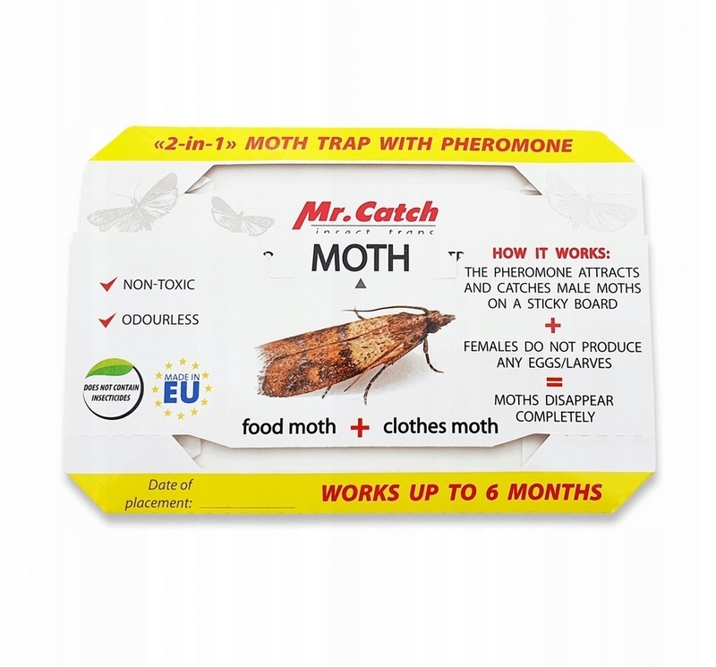 Pułapka wabiąca Mr. Catch to niezwykle skuteczna broń na mole ubraniowe i mole spożywcze. Nie zawiera insektycydów, ani innych szkodliwych substancji chemicznych. Dzięki temu jest wyjątkowo bezpieczna w stosowaniu. Zachowuje skuteczność nawet do 6 miesięcy od wystawienia, a jej unikalną cechą jest feromon, który silnie przyciąga samce owadów. Owady zwabione do jej wnętrza są skutecznie tam zatrzymywane za pomocą silnej klejowej powierzchni. W opakowaniu znajdują się dodatkowe paski samoprzylepne, które umożliwiają przymocowanie pułapki również do powierzchni pionowej.