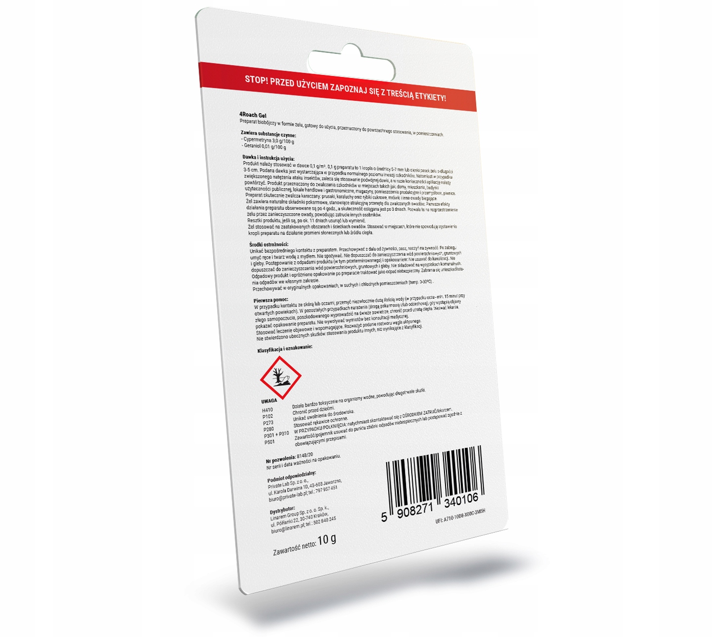 4Roach Gel to preparat biobójczy w formie żelu przeznaczony do zwalczania karaluchów i prusaków w pomieszczeniach. Środek na karaluchy do powszechnego stosowania.