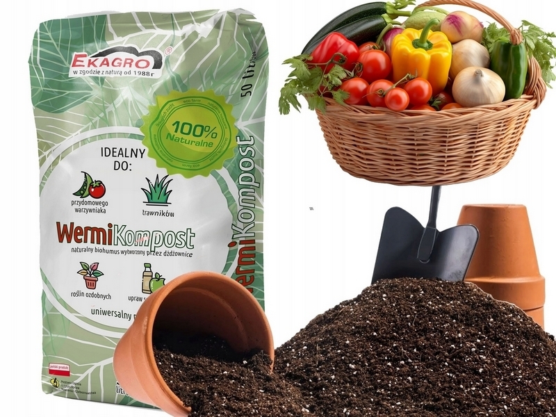 BIO KOMPOST NATURALNY WERMIKOMPOST BIOHUMUS 50L ZIEMIA PO DŻDŻOWNICACH ECO